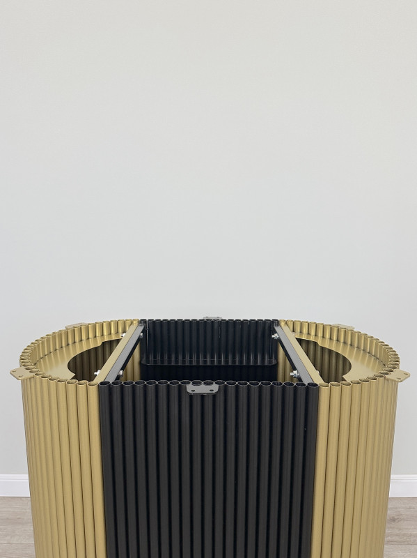 Подстолье EL STADIONE 35 — стиль, устойчивость и премиальный дизайн EL STADIONE 35 — новинка среди дизайнерских подстолий для столов. Конструкция цилиндрической формы с вертикальными ламелями создаёт выразительный акцент в интерьере и подчёркивает высокий уровень вашего пространства — будь то ресторан, бар, гостиная или офисное помещение. Преимущества модели: Эстетика и функциональность: сочетание геометрии и фактуры создаёт эффектную визуальную динамику. Прочная и устойчивая база: рассчитана на столешницы до 140?90 см. Внутреннее основание 64,4?35 см обеспечивает отличную устойчивость без громоздкости. Надёжность и долговечность: металл с порошковым покрытием устойчив к влаге, царапинам и механическим воздействиям. Вес 31,5 кг — оптимален для стабильности и удобства монтажа. Совместимо с различными материалами столешниц: массив дерева, камень, искусственный камень, керамогранит, МДФ. Применение: Рестораны, кафе, бары Зоны ожидания и лаунж-пространства Домашние обеденные и журнальные столы Интерьеры в стилях лофт, арт-деко, минимализм, современный модерн Технические характеристики: Модель: EL STADIONE 35 Вес: 31,5 кг Макс. размер столешницы: 140?90 см Размер основания: 64,4?35 см (внутреннее) Цена при сумме заказа от 1 млн руб.: 16 507 ? Полимерно-порошковая покраска. Сборно-разборная конструкция. Покраска в любой цвет по коду "RAL" https://colorscheme.ru/ral-colors/ral-classic.html. Регулируемые ножки, которые компенсируют неровности пола.